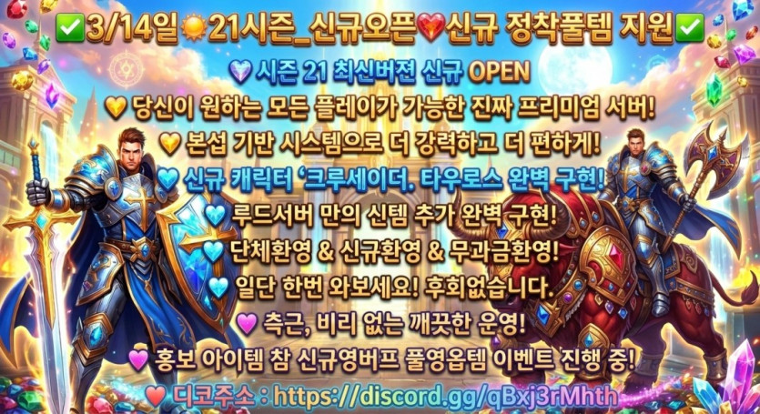 ❤️3월14일 루드서버 정식오픈❤️신규 풀템 지급 ❤️